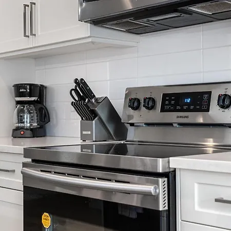 Les équipements de cuisine comprennent un micro-ondes, un réfrigérateur et un poêle dans une cuisine, équipée d'une grande table à manger. Ce logement se trouve à quelques pas de Sultan's Tent, servant des plats méditerranéens. L'aéroport de Calgary est à 20 km de Contemporary Luxury 4 Bedroom House Near Downtown, et l'arrêt de bus 14th Street & Kensington Road est à moins de 5 minutes à pied.